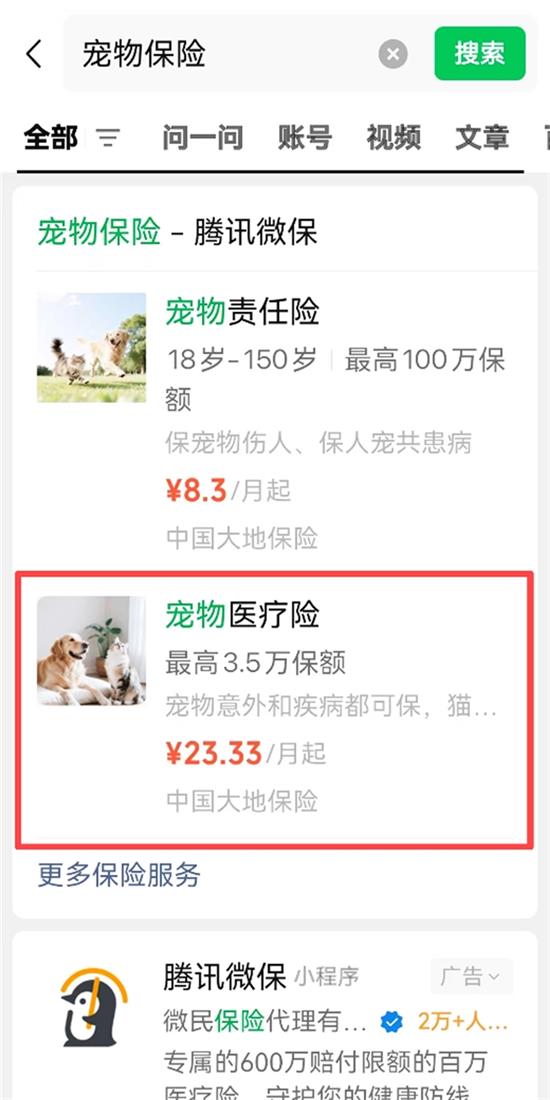 因此,一份设计贴心、理赔门槛低的宠物保险,才能真正为宠物主分忧。在这方面,腾讯微保宠物险就以0免赔额为特色,所有方案都是0元起就可报销(包括门诊和手术),定点医院可报销70%。每月仅需支付23.33元,就能为爱宠上一份涵盖疾病和意外医疗的保障,可以更从容应对突发状况。直接微信内搜索“宠物保险”就可找到这款产品。